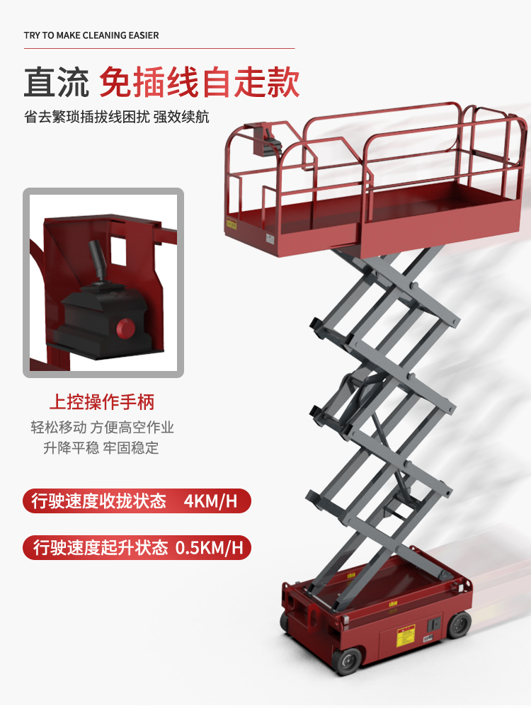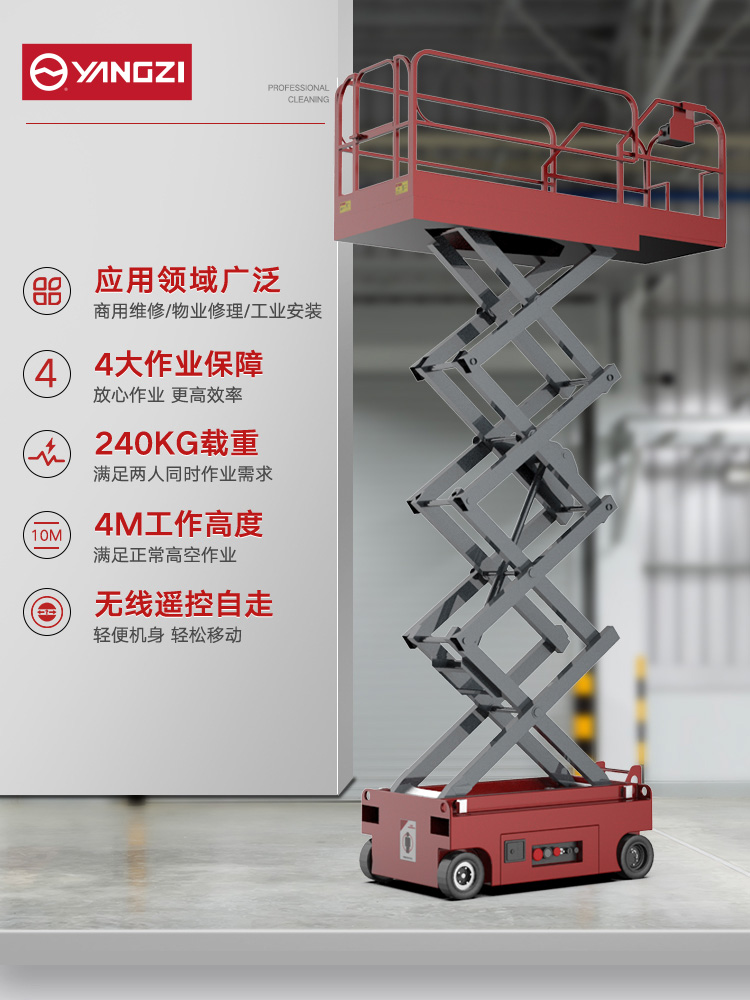 揚(yáng)子升降平臺(tái):無(wú)線自走、堅(jiān)固穩(wěn)定、升降平穩(wěn)、移動(dòng)方便、彈簧減震、安全環(huán)保等優(yōu)點(diǎn),還有多場(chǎng)景使用,加長(zhǎng)延伸站立臺(tái),還配有應(yīng)急下降按鈕