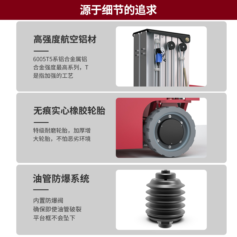 揚子升降平臺DZ1:智能雙控系統,擁有優質鋁合金輕便機身,輕松移動,應用領域廣泛,支撐平穩,還有充電保護,大容量電池組,無痕實心橡膠輪胎,可調節自動升降。