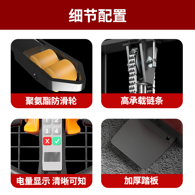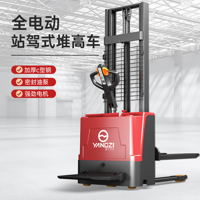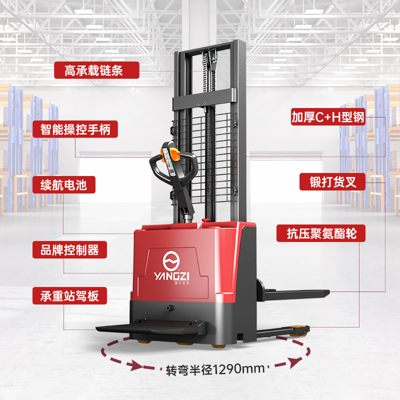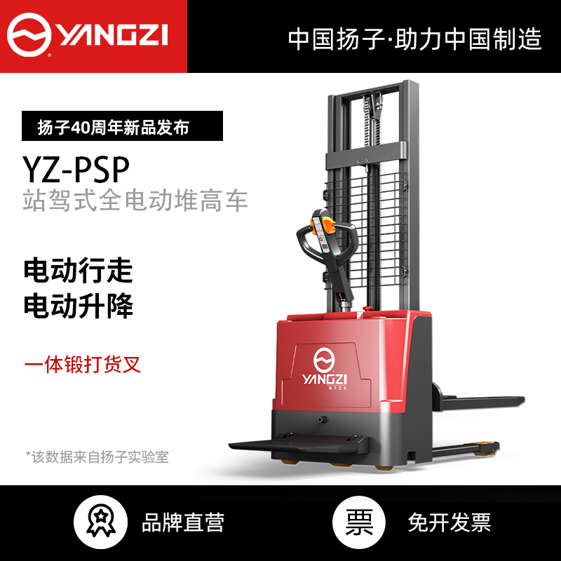 揚子堆高車PSP:電動行走,電動堆高,高承載加固鏈條,密封油缸,人體學設計手柄,使用場景廣泛,輕松搬運,強勁升降,全車扎實用料,加厚C+H型鋼車架。