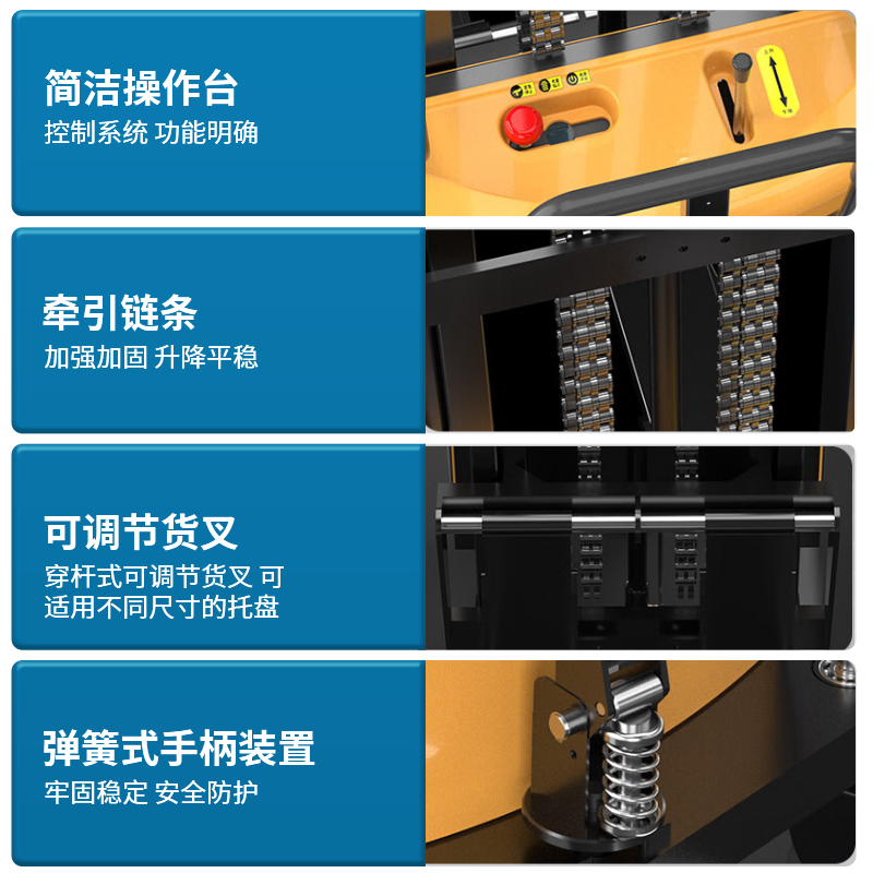 揚子堆高車YZ-B系列是半自動的堆垛機(jī),對于預(yù)算有限,想要達(dá)到一定效率的客戶來說是最好的選擇,而且這款半自動電動堆高車采用加厚貨叉,密封油缸,產(chǎn)品質(zhì)量經(jīng)過多方檢測,更加耐用。