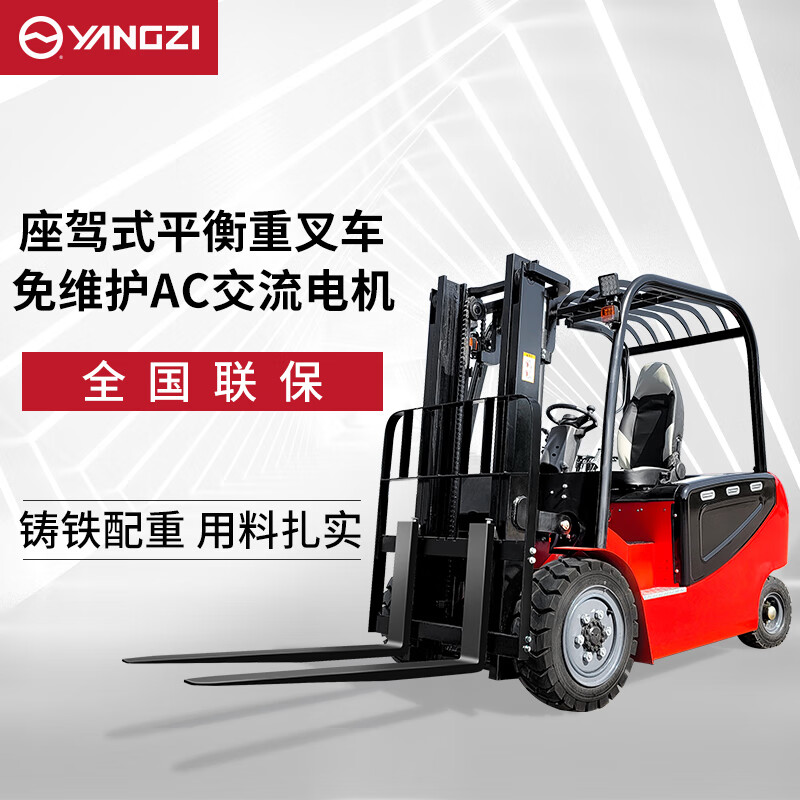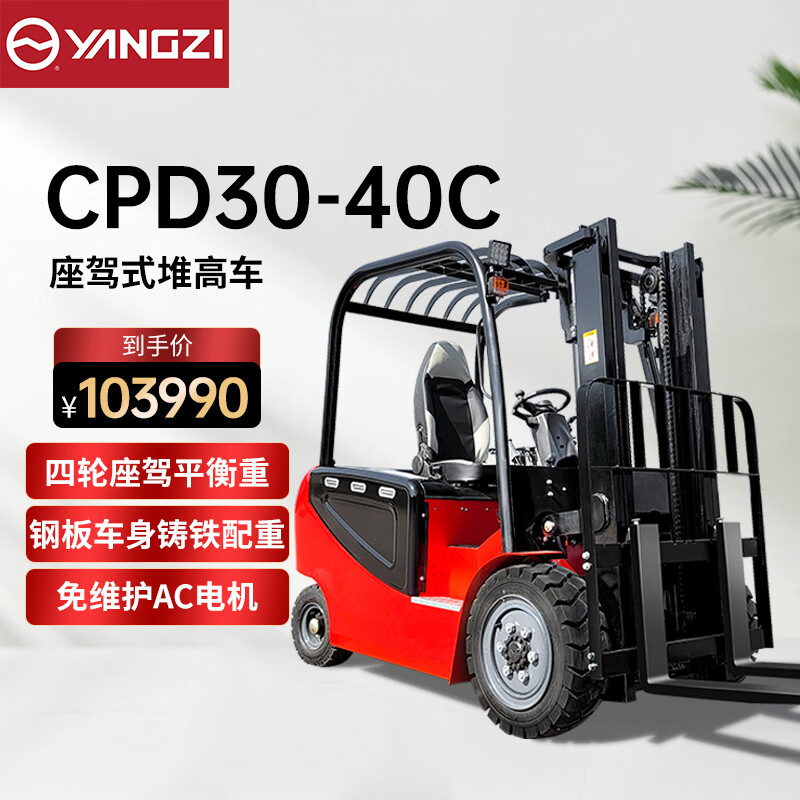 揚子電動叉車CPD30-40C 四輪座駕式叉車3噸升高4米,采用汽車操控方式,多功能顯示屏,鋼板車身