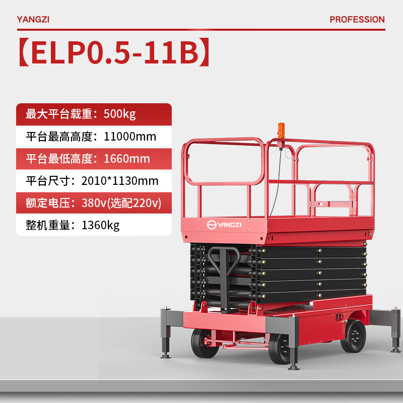 揚子升降機插線款ELP05-11B升高11米載重500KG,起升油缸,設有卸貨限流閥。